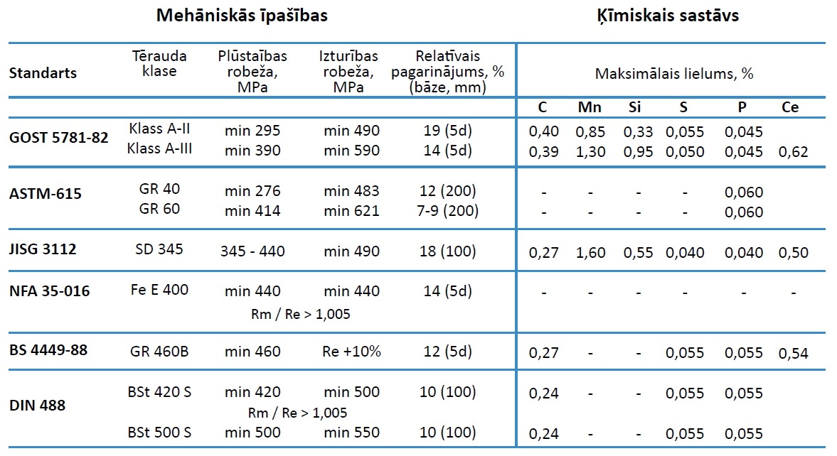 Velmējumu standartu salīdzinošā tabula